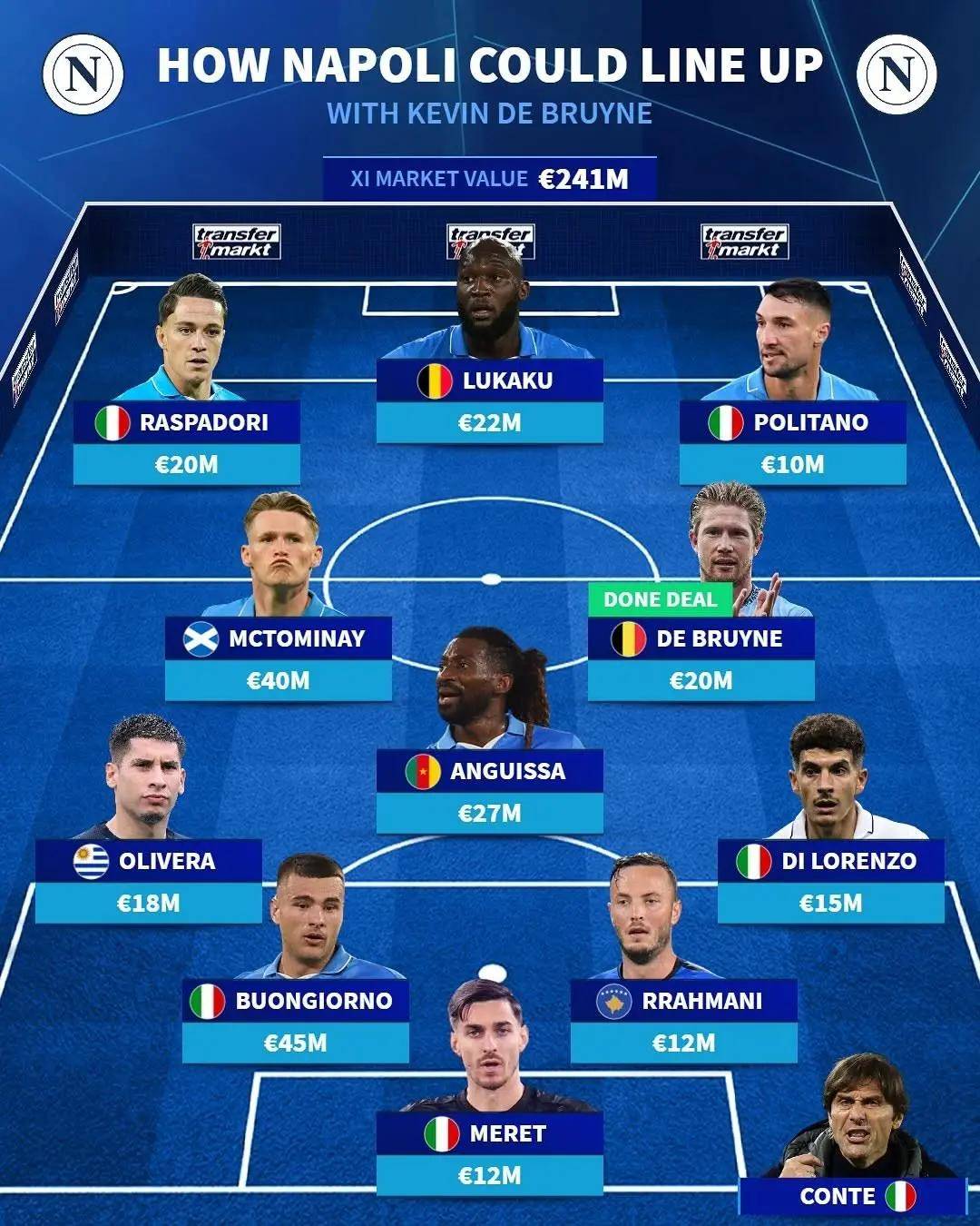 在这笔交易中,那不勒斯进行了多笔引人注目的引援:3100万欧元引进了比利时中场别克马,2500万欧元签下了年轻的诺阿-朗,1800万欧元购得了古铁雷斯,1500万欧元引入了米林科维奇,同时还以900万欧元的价格租借来了洛伦佐-卢卡及引进了马里亚努奇。更令人惊喜的是,他们还在转会市场以自由身签下了高水平的德布劳内。尽管引进的这些球员在知名度上似乎不算顶尖,但结合孔蒂的战术要求来看,别克马、卢卡和德布劳内等人无疑是非常契合战术体系的,因而这次亿元级别的补强可能会大大提升那不勒斯在联赛中的竞争力,助力他们完成卫冕的宏伟蓝图。